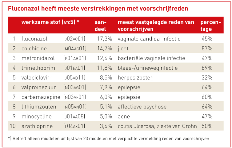 Geneesmiddelen met verstrekkingen met een vastgelegde voorschrijfreden (aandeel in 2017)