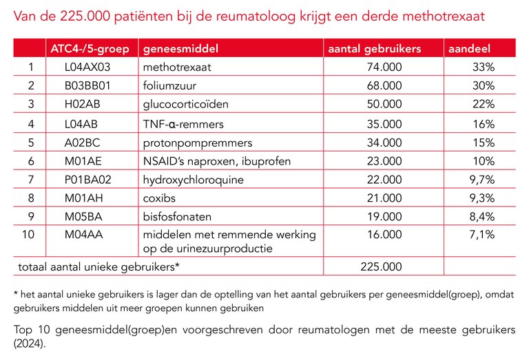 Methotrexaat telt meeste gebruikers op voorschrift van reumatoloog